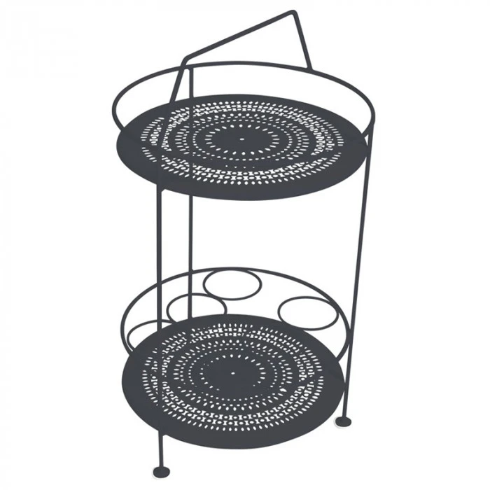 Le bar portatif sera idĂ©al pour complĂ©ter votre mobilier de jardin Montmartre et se fondra parfaitement Ă votre dĂ©cor. Ce petit bar s’avère très utile pour le service grâce Ă son porte-bouteille intĂ©grĂ©, il vous sera possible de glisser vos bouteilles de vins ou carafes d’eau. Son double plateau en tĂ´le acier perforĂ©e est Ă©galement pratique pour disposer des objets de dĂ©coration ou condiments de cuisine. Très maniable car lĂ©ger, ce bar portatif vous suivra partout.Â