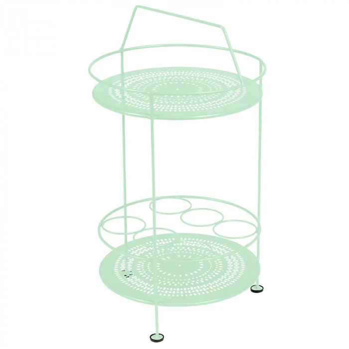 Le bar portatif sera idéal pour compléter votre mobilier de jardin Montmartre et se fondra parfaitement à votre décor. Ce petit bar s’avère très utile pour le service grâce à son porte-bouteille intégré, il vous sera possible de glisser vos bouteilles de vins ou carafes d’eau. Son double plateau en tôle acier perforée est également pratique pour disposer des objets de décoration ou condiments de cuisine. Très maniable car léger, ce bar portatif vous suivra partout.