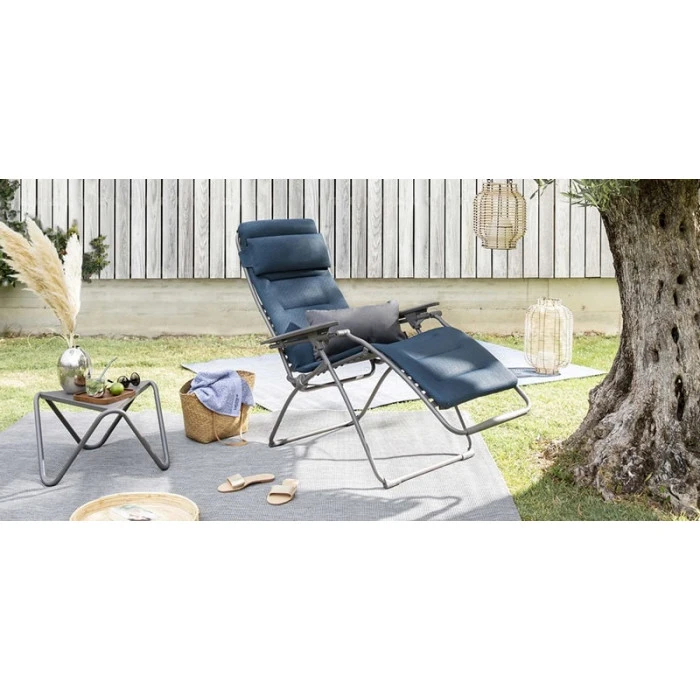C’est pour cela que Lafuma a intégré des patins fixés sur les pieds ainsi qu’une bague de protection sur le repose-pieds, assurant également à votre fauteuil de jardin une excellente durabilité.