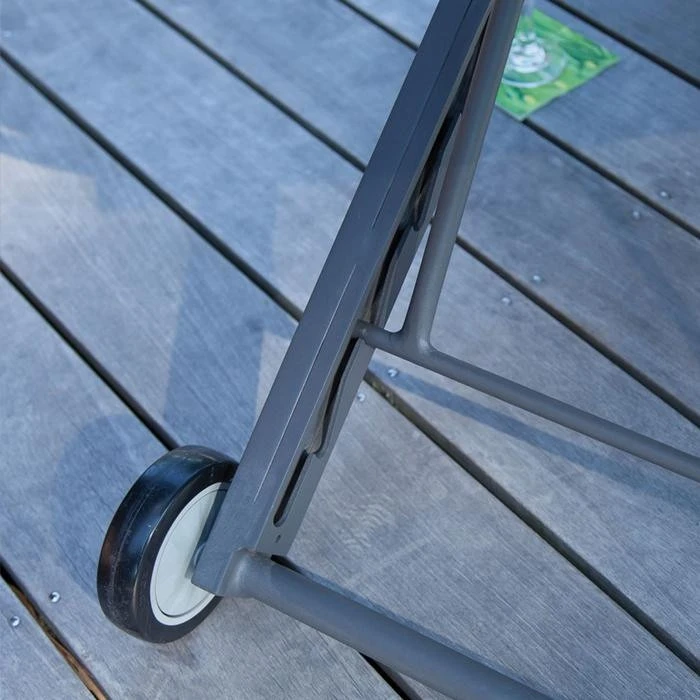 Son armature en aluminium lui confère légèreté et robustesse. Recouvert d’une peinture époxy, l’aluminium est protégé contre les UV et la corrosion. Ce bain de soleil pourra rester dehors par tout temps.