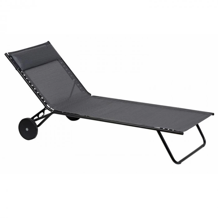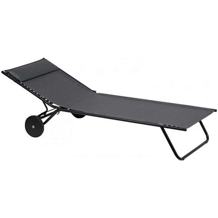 Vous pouvez facilement plier bagage une fois votre session de bronzage finie, simplement en déplaçant votre transat à l’aide des deux roues de transport.