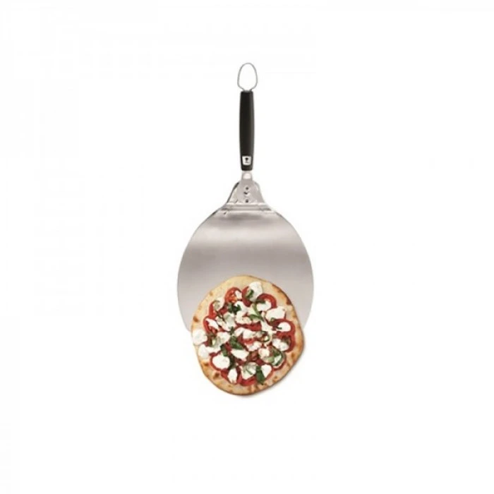 Cette pelle en acier inoxydable permet de soulever et transporter de la table de préparation jusqu’au barbecue puis vers la table à manger.